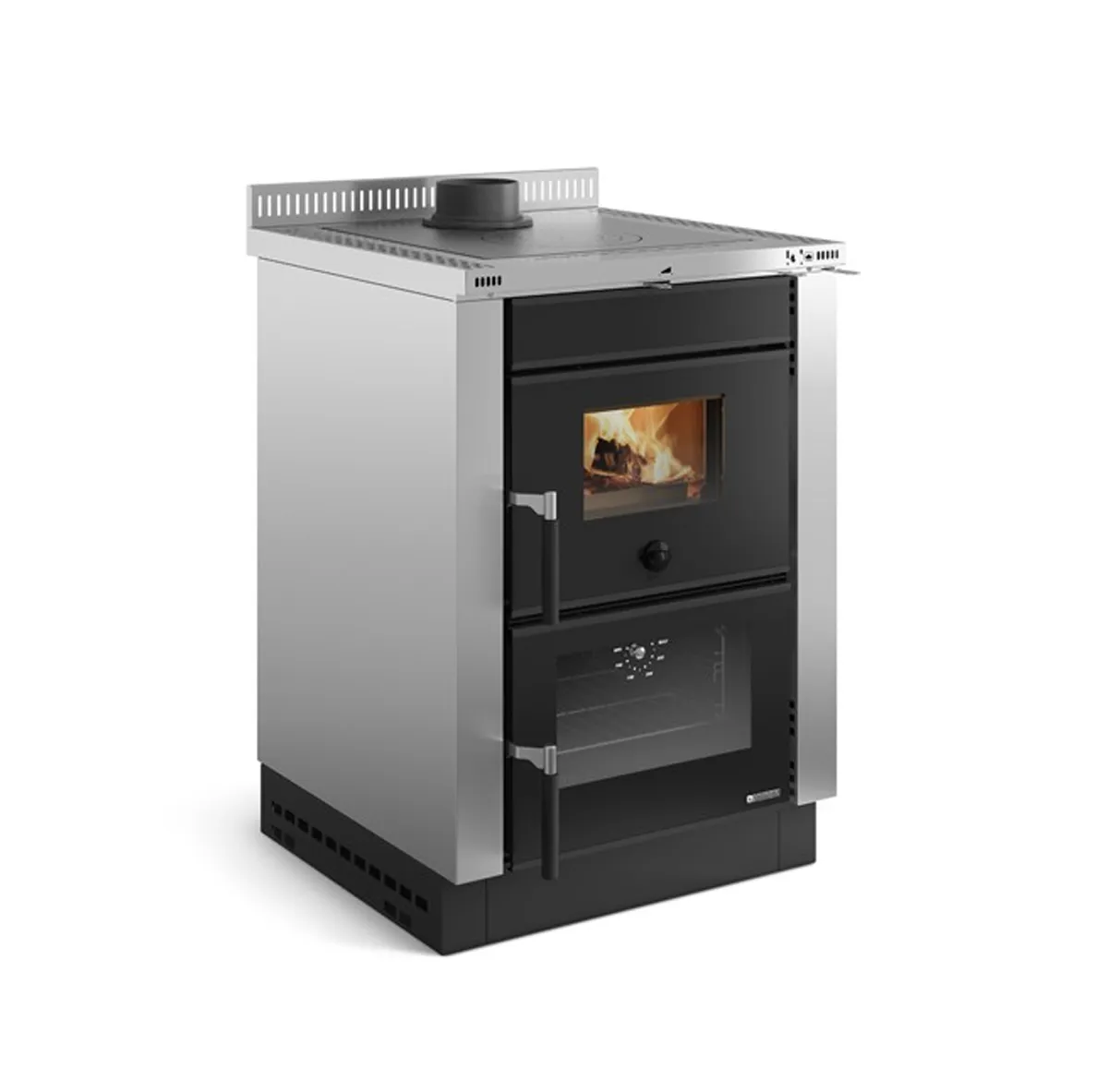 Kalusteisiin integroitava puuhella. Tulipesä yläpuolella puolella ja tehokas paistouuni alhaalla. Tulipesässä triplalasi. Valurautainen keittotaso päällä, ja lisävarusteena saatavilla keraaminen keittotaso. Hormiliitännät päältä tai takaa, ja lisävarusteena muutossarja oikealle, vasemmalle. Turvaetäisyys sivuille 0 cm, katso kuvasta keittotason yläpuolinen turvaetäisyys. Väri saatavilla ruostumattomana tai mustana. Alla säilytyslaatikko. Automaattinen ensiöilmansäätö kapillaarisäätimellä. Molempien luukkujen kätisyys vaihdettavissa. Mahdollisuus sähkökytkennälle vakiona, jolla saadaan uuniin valo.